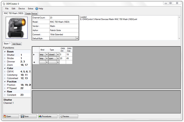 {{Infobox Plugin| Name = DDFCreator 3 | Logo = No-photo.jpg | Screenshot = [[Image:DDFCreator.png|thumb|upright=2|DDFCreator.png]] | Beschreibung = Mit dieser Software soll das erstellen und bearbeiten von DDFs erleichtert werden. | Hersteller = Patrick Grote| AktuelleVersion = 0.3| AktuelleVersionFreigabeDatum = 17.10.2013| Status = Pre-Pre-Release 3| Funktioniertmit = Windows | Programmiersprache = C#<!--| Kategorie = --><!--| Lizenz = -->| Deutsch = Nein<!--| Email = -->| Download = http://www.dmxcontrol.de/forum/index.php?page=Attachment&attachmentID=6143&h=1ff93a7d13ea7006fa9ee4b401dd2e4a12d749ad }} | {{Infobox Plugin| Name = DDFCreator 3 | Logo = No-photo.jpg | Screenshot = [[Image:DDFCreator.png|thumb|upright=2|DDFCreator.png]] | Beschreibung = Mit dieser Software soll das erstellen und bearbeiten von DDFs erleichtert werden. | Hersteller = Patrick Grote| AktuelleVersion = 0.3| AktuelleVersionFreigabeDatum = 17.10.2013| Status = Pre-Pre-Release 3| Funktioniertmit = Windows | Programmiersprache = C#<!--| Kategorie = --><!--| Lizenz = -->| Deutsch = Nein<!--| Email = -->| Download = http://www.dmxcontrol.de/forum/index.php?page=Attachment&attachmentID=6143&h=1ff93a7d13ea7006fa9ee4b401dd2e4a12d749ad }} | ||