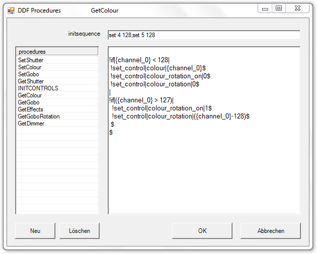 DMXControl 2, Manual, Kapitel "DDFCreator": Procedurefenster im DDFCreator