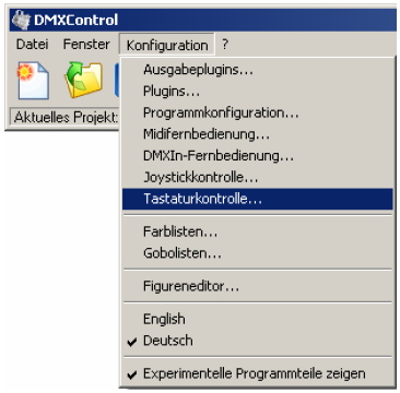 DMXControl 2, Manual, Kapitel "Tastatursteuerung": Menü Konfiguration