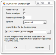 | 00:14, 27. Nov. 2012 | DMXC2 Manual DDFCreator Einstellungen.png (Datei) | 14 KB | DMXControl 2, Manual, Kapitel "DDFCreator": Einstellungsfenster des DDFCreators | 1 | |