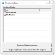 | 14:28, 24. Nov. 2012 | DMXC2 Manual Pludin Pluginverwaltung.png (Datei) | 11 KB | DMXControl 2, Manual, Kapitel "Plugins": Das Fenster der Pluginverwaltung von DMXControl | 2 | |